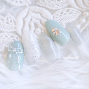 ぷっくり手描きリボンネイル♡