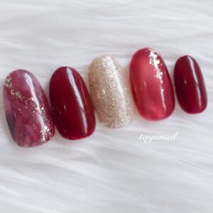 和装にぴったりボルドーネイル